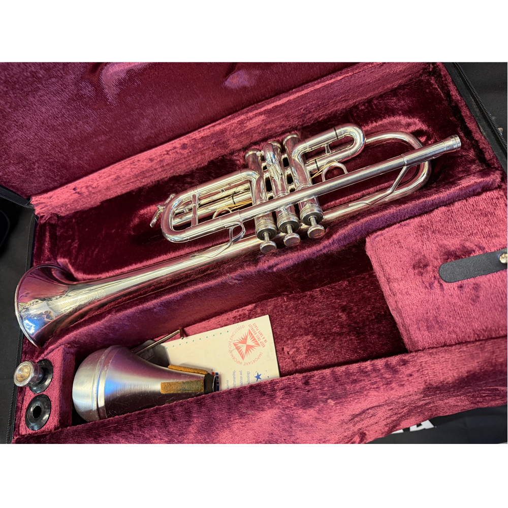 Fully serviced Benge trumpet in C. Plays beautifully and is in fantastic used condition. Complete outfit with two mouthpieces, mute, lyre, and lockable hard case.